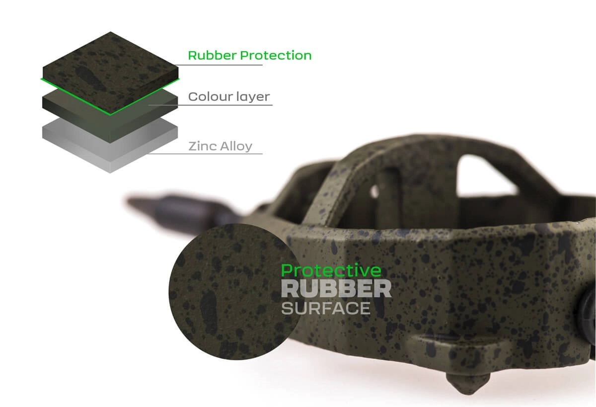 • Pogumované matne zelené prevedenie s čiernymi bodkami - skvelé maskovanie