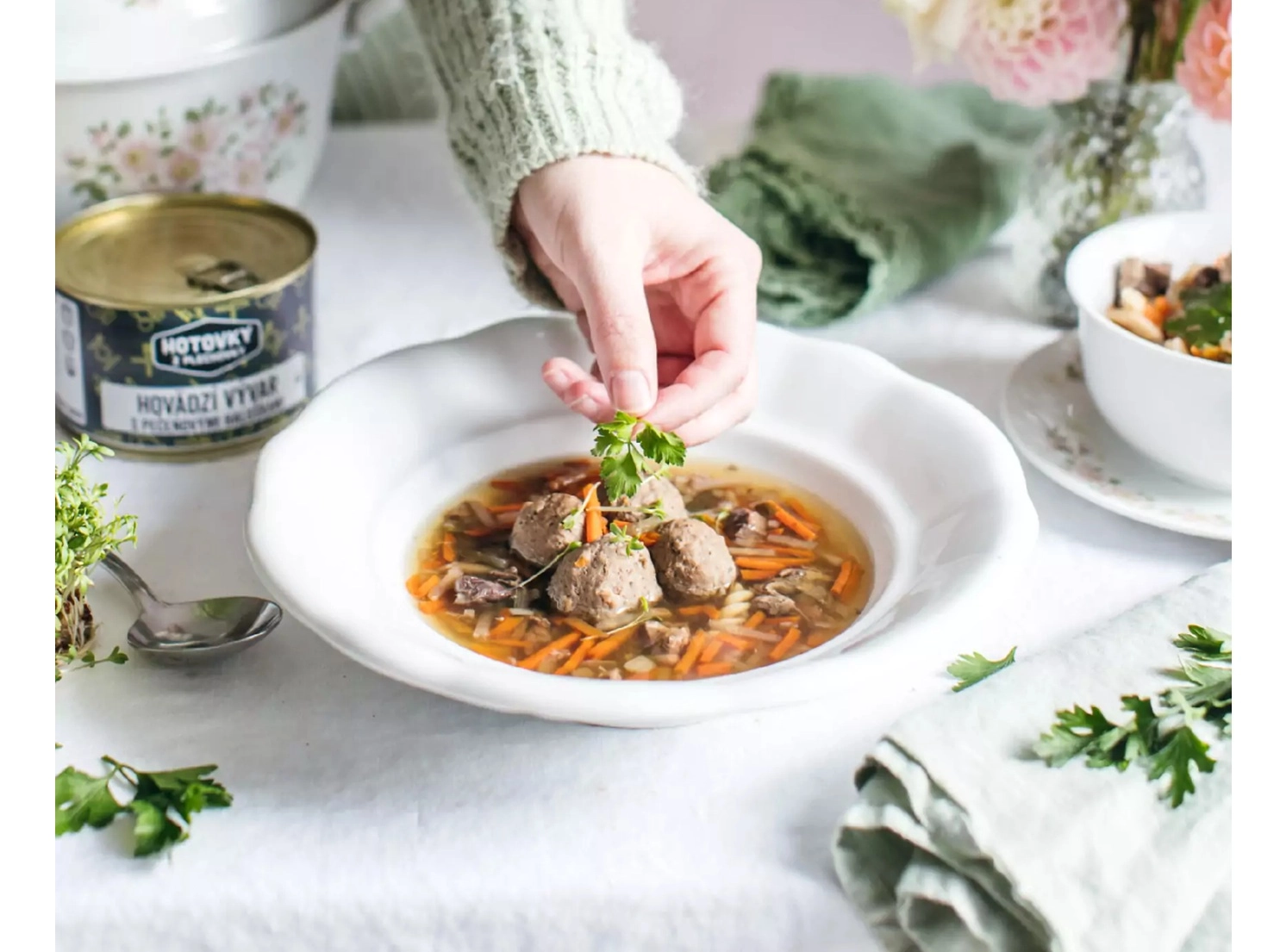 Hotovky z plechovky Jedlo Hotové Hovädzí vývar s pečeňovými haluškami 1200ml