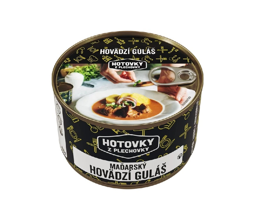 Vynikajúci hovädzí guláš zo slovenského mäsa, na ktorom si skutočne pochutíte. Práve Hotovky z plechovky ponúkajú sterilizované hotové jedlo v konzervách, ktoré stačí len zohriať a pochutiť si ako v reštaurácii. Či už ste pri vode a užívate si rybačku alebo kempujete s rodinou a priateľmi, tak stačí len zohriať konzervu a dosýta sa najesť. Balenie 400g postačuje pre jedného rybára na plnohodnotné jedlo. Všetky jedlá sú slovenskej výroby pričom spĺńajú všetky potravinárske štandardy a sú zarukou vysokej kvality.